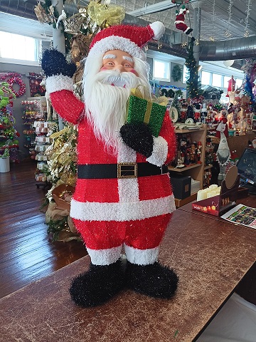 Santa Mesh Fabric Lighted (Battery Operated) Measures 30" In Height. A Great Holiday Decor Item.